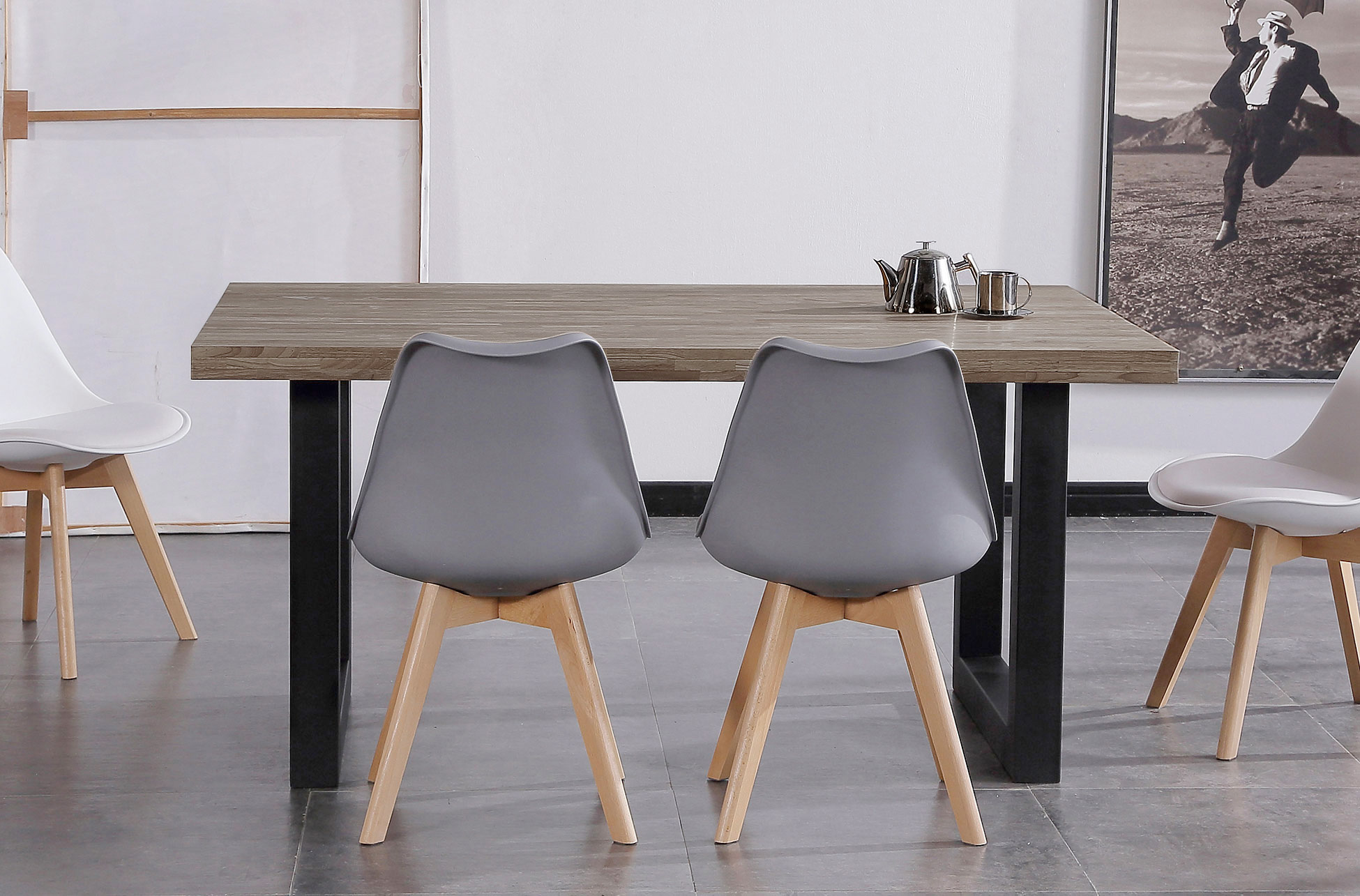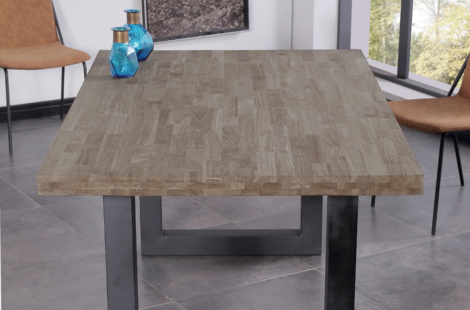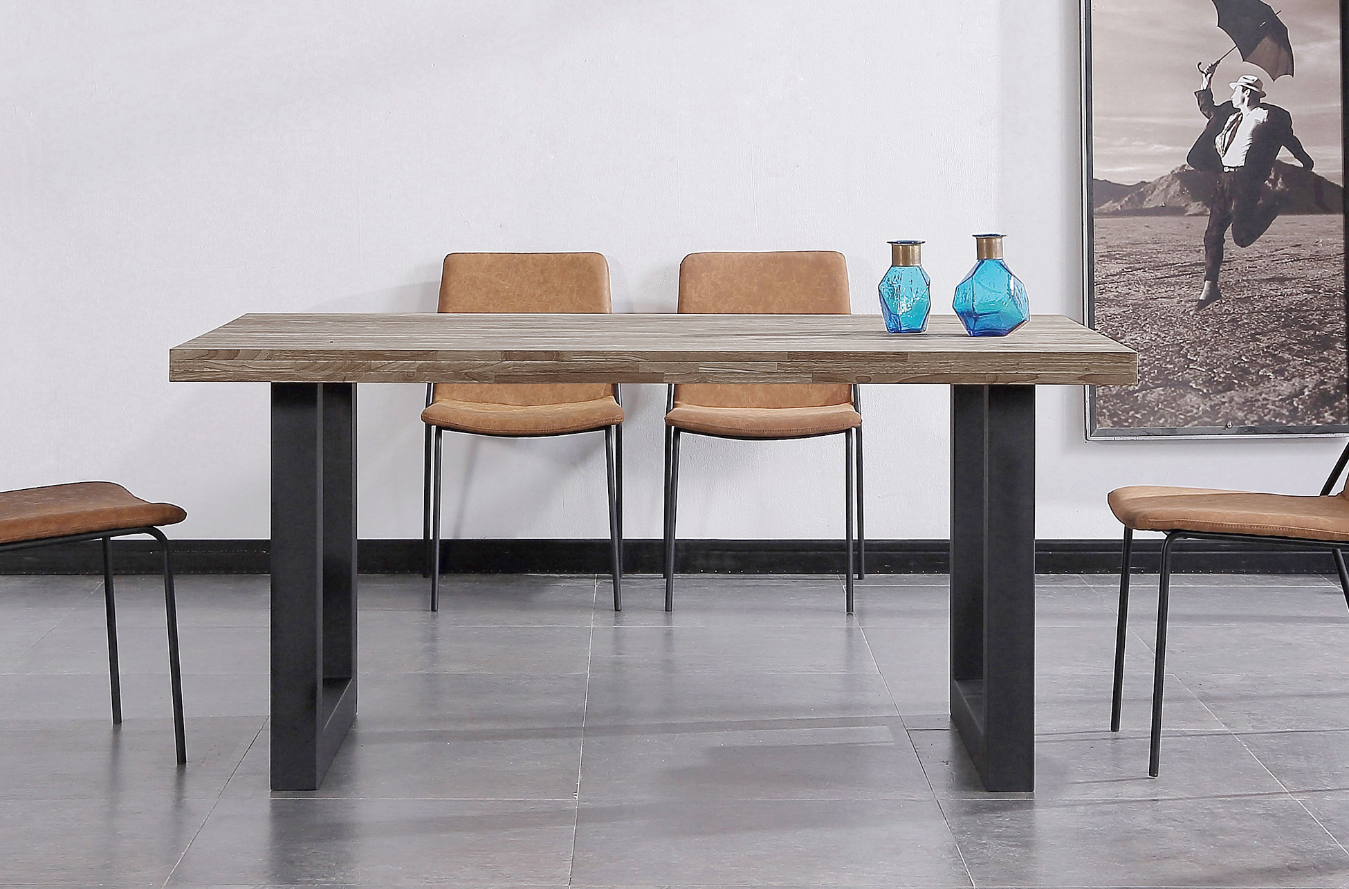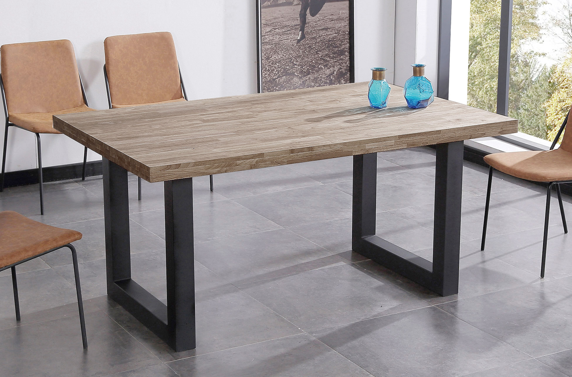 Mesa comedor modelo Loft. Tapa madera roble american 54 mm grosor. Patas metálicas color negro. Medidas 160 x 100 x 75 cm.