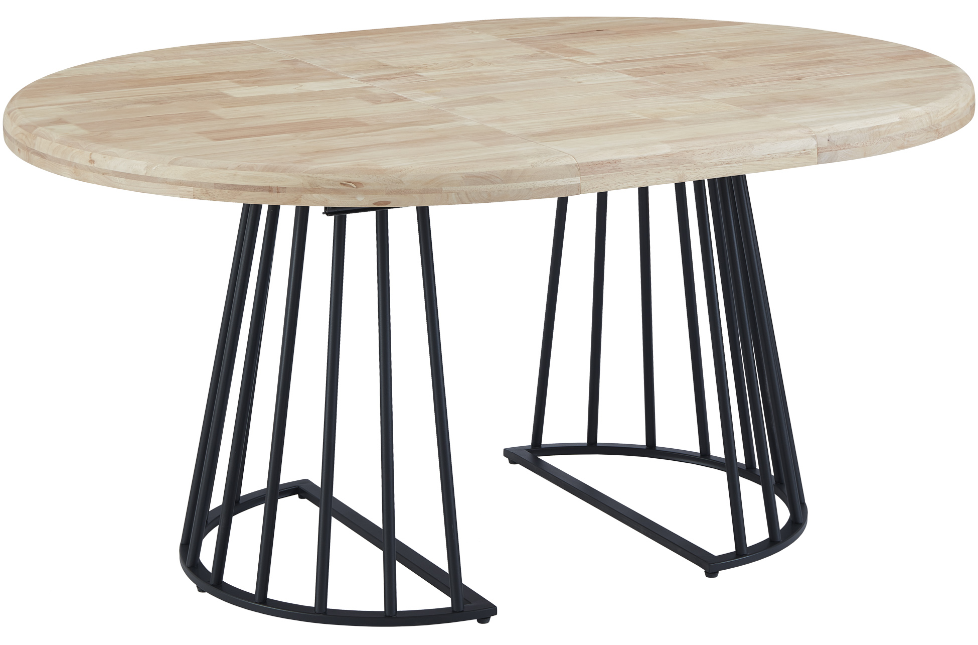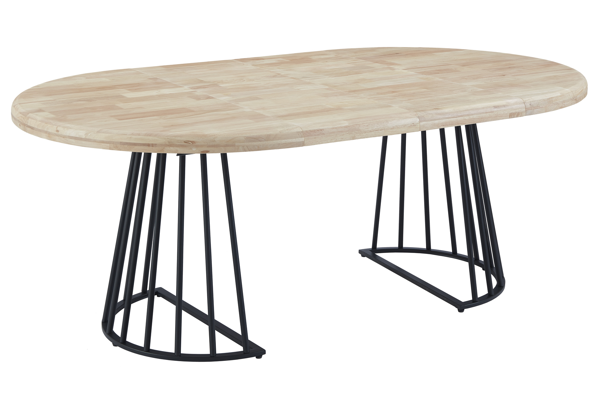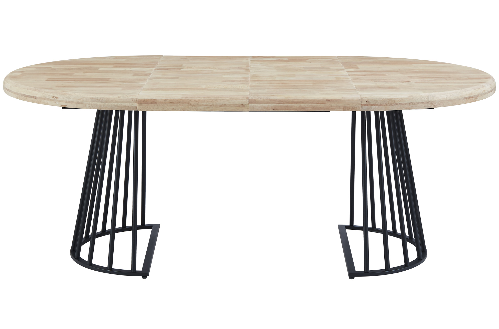Tapa y extensibles en madera de roble. 2 extensibles individuales de 40 cm ancho. Extensible a 160 o 200 cm. Estructura metálica en color negro. Medidas: 120 – 160 – 200 x 120 x 76 cm.