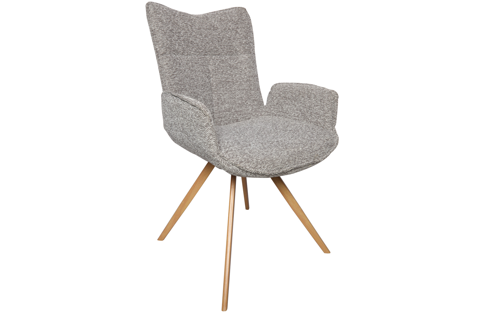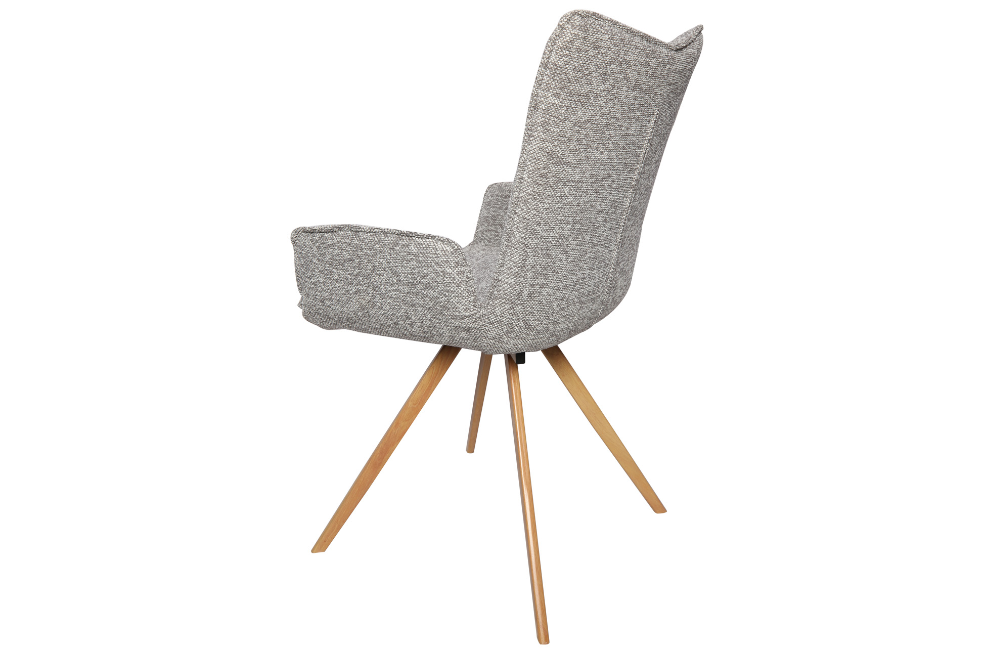 Silla comedor tapizada en tejido. Patas metálicas imitación madera. Tejido gris. Medidas : 57,5x 56,5 x 91 cm.