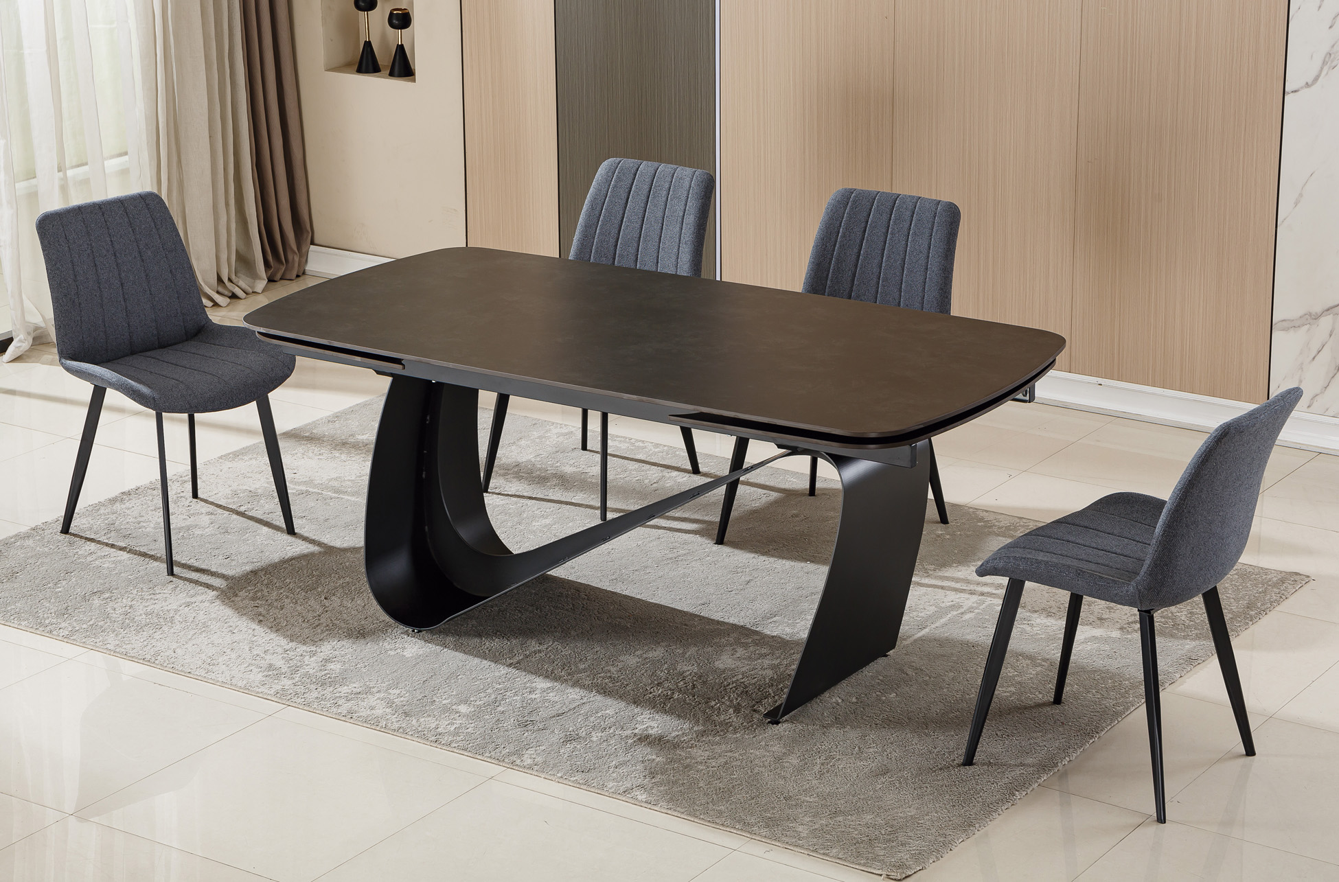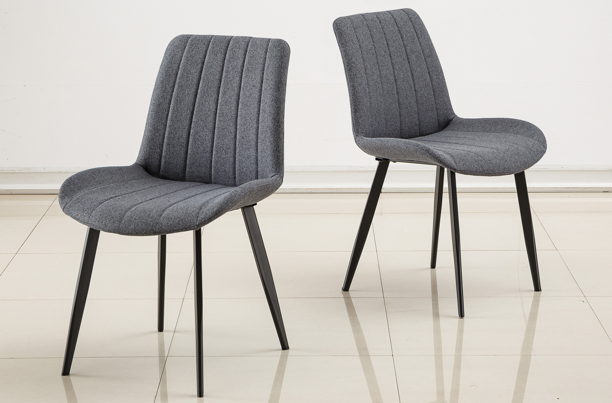 Silla comedor tapizada. Costuras decorativas líneas verticales. Estructura patas soldada en 1 pieza color negro. Tejido gris. Medidas : 51,5 x 59 x 83 cm.