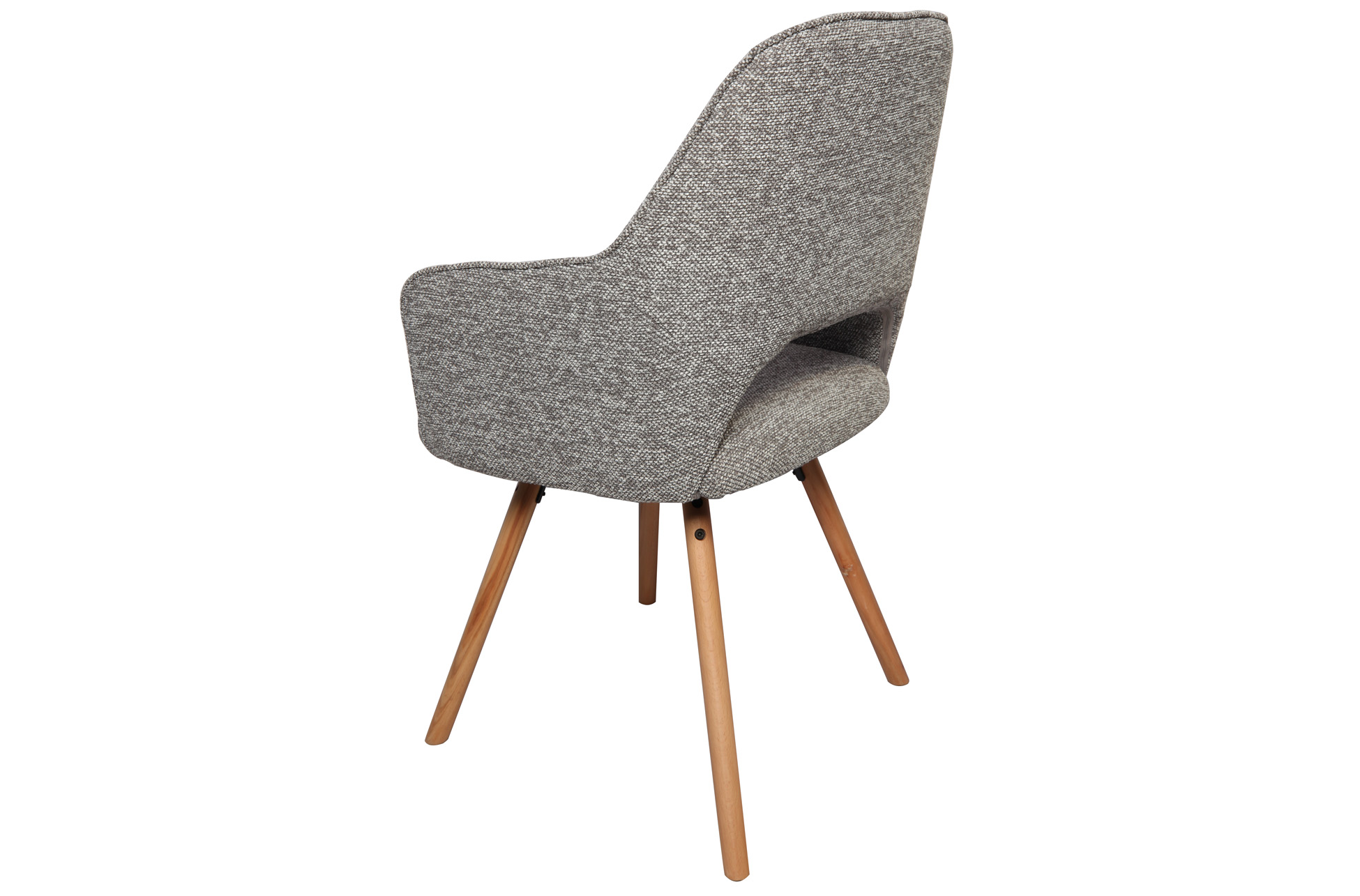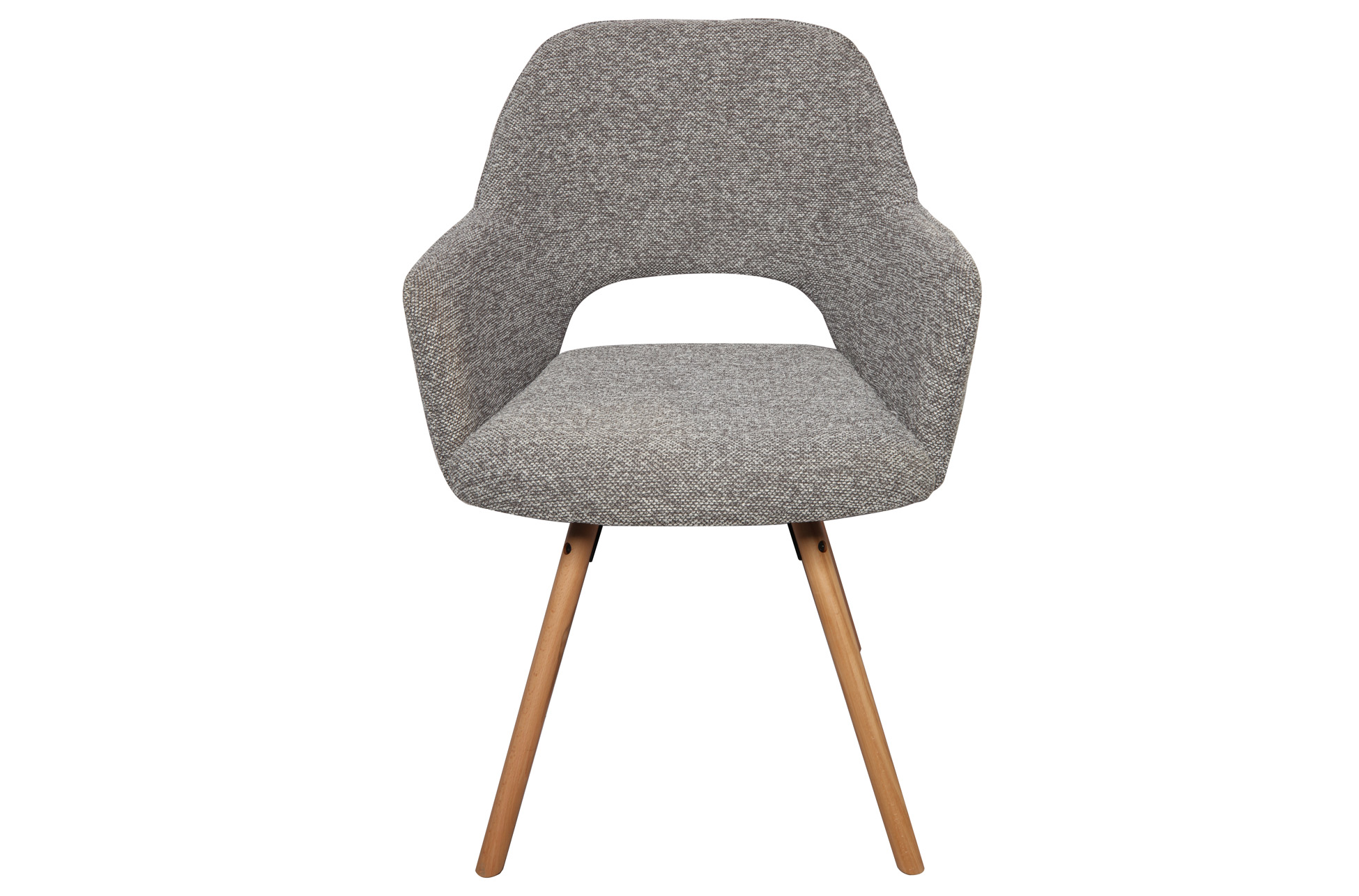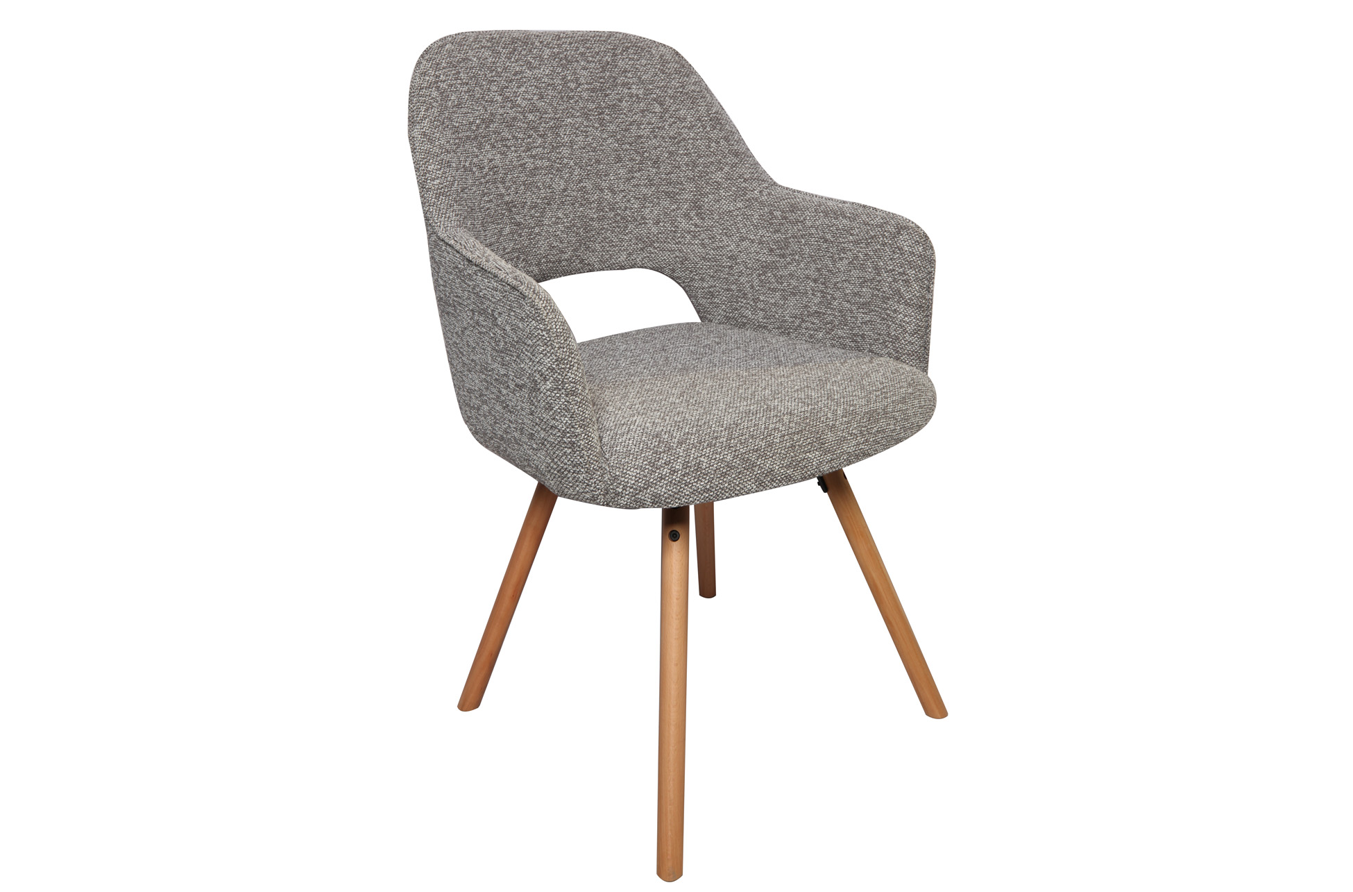 Silla comedor tapizada en tejido. Giratoria 180 grados. Función retorno a su posición. Patas en madera color natural. Tejido gris. Medidas : 60 x 55 x 87,5 cm.