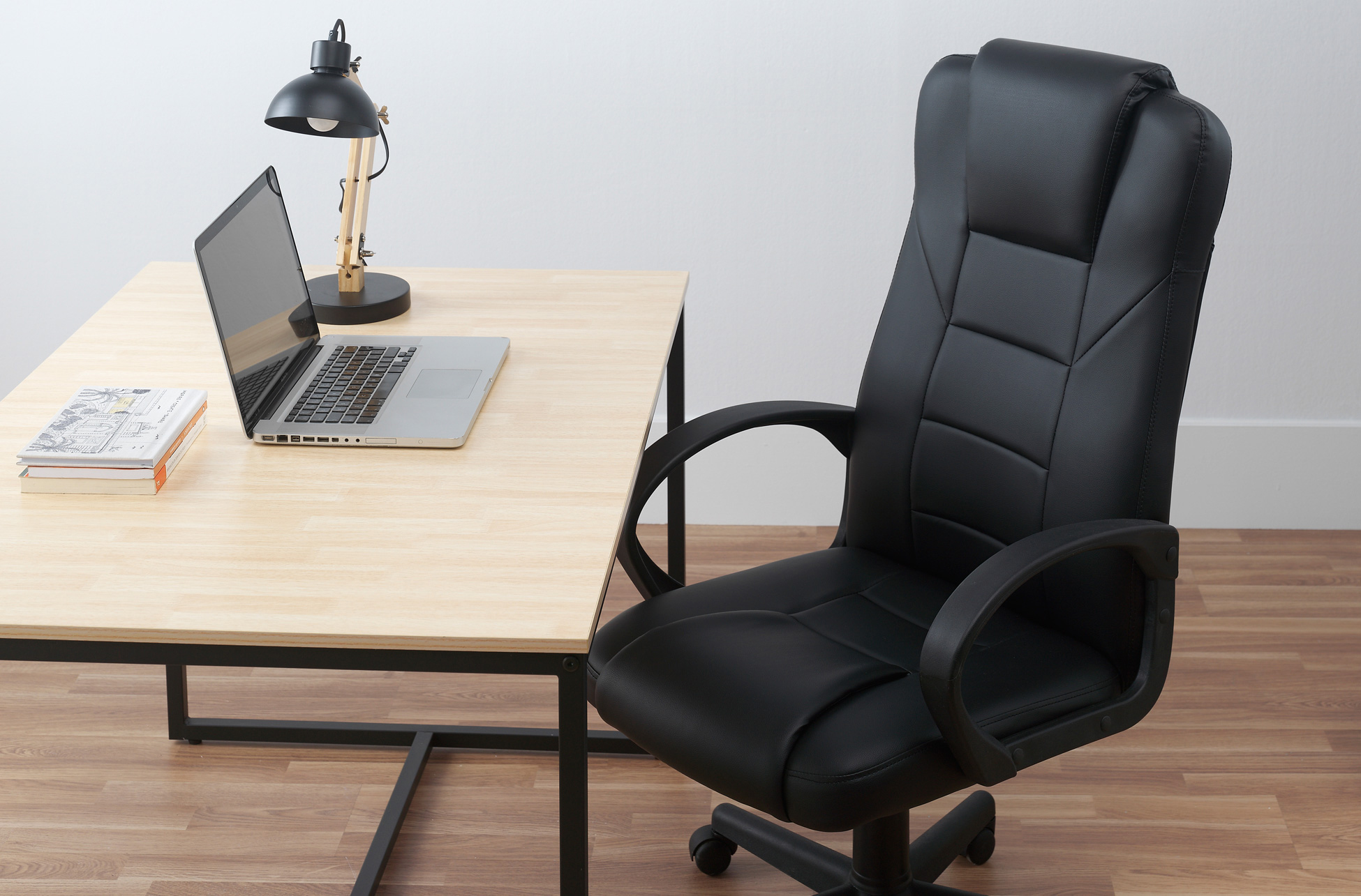 SILLA DE DESPACHO MODELO HENRY SÍMIL PIEL NEGRO.