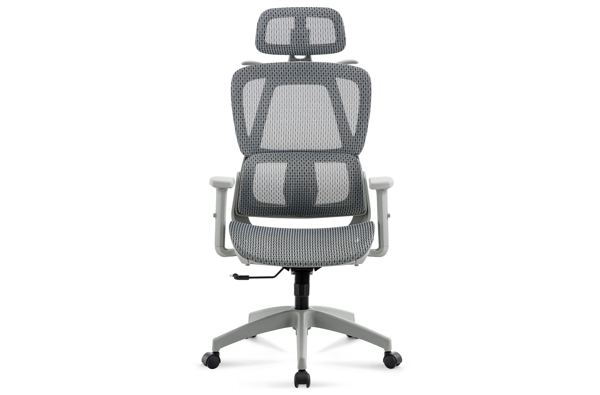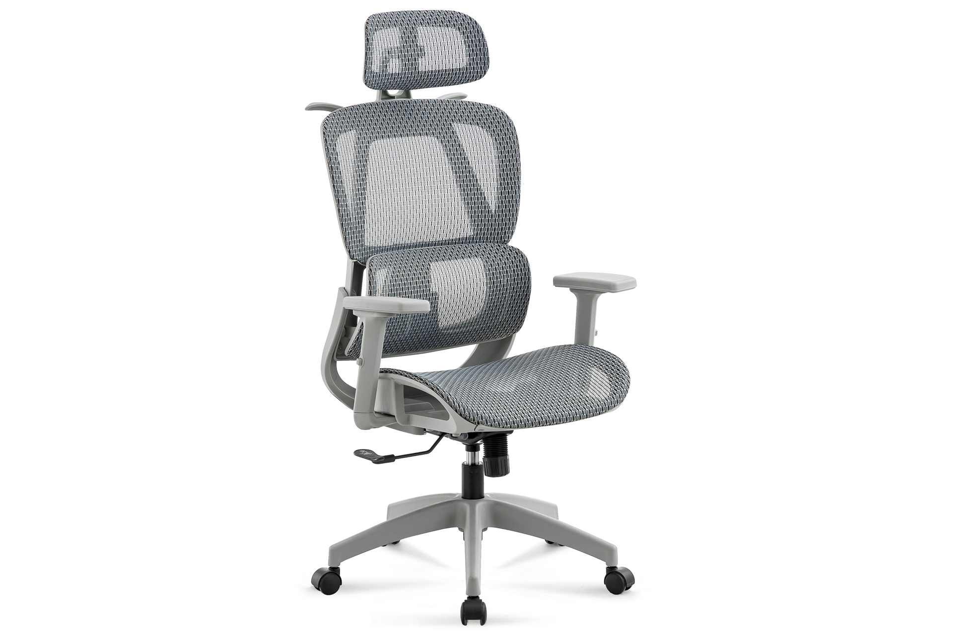 Sillón ergonómico giratorio. Altura regulable. Respaldo reclinable hasta 145 grados. Soporte lumbar 3D adaptativo. Reposacabezas regulable en altura 5 cm e inclinación de 60 grados. Brazos 3D regulables en altura. Tejido 3D transpirable alta resistencia color gris. Estructura reforzada color gris hasta 115 kg. Medidas: 70 x 70 x 118 – 124 cm.