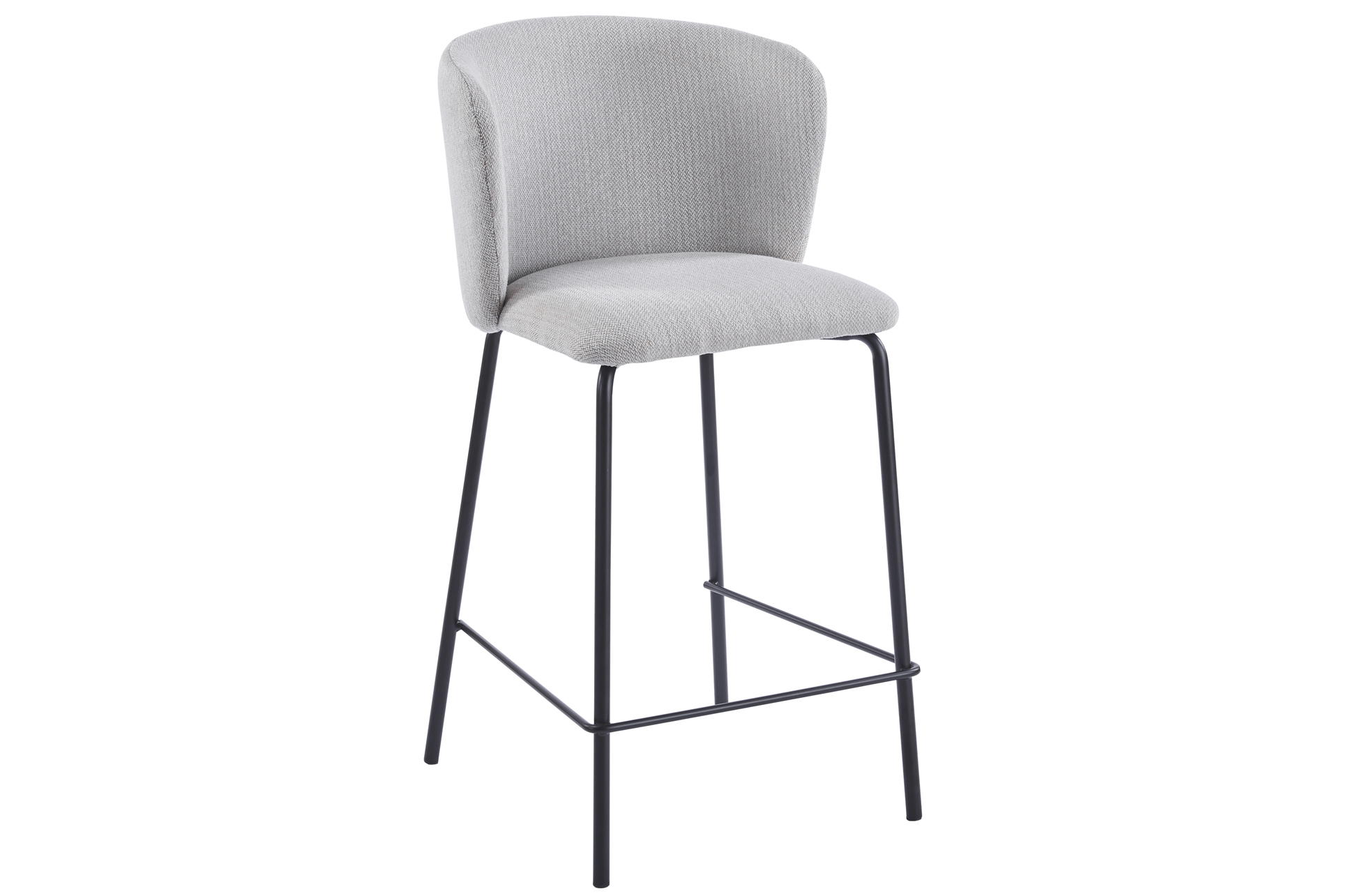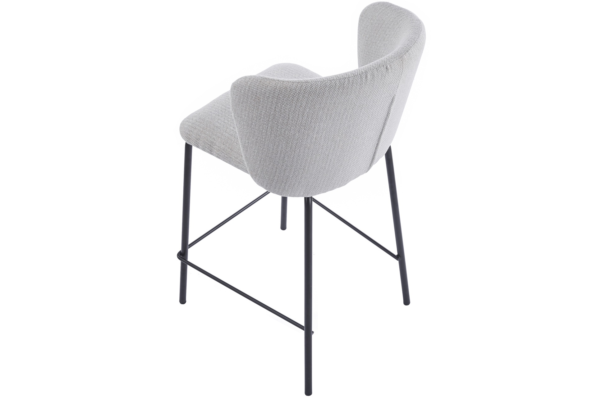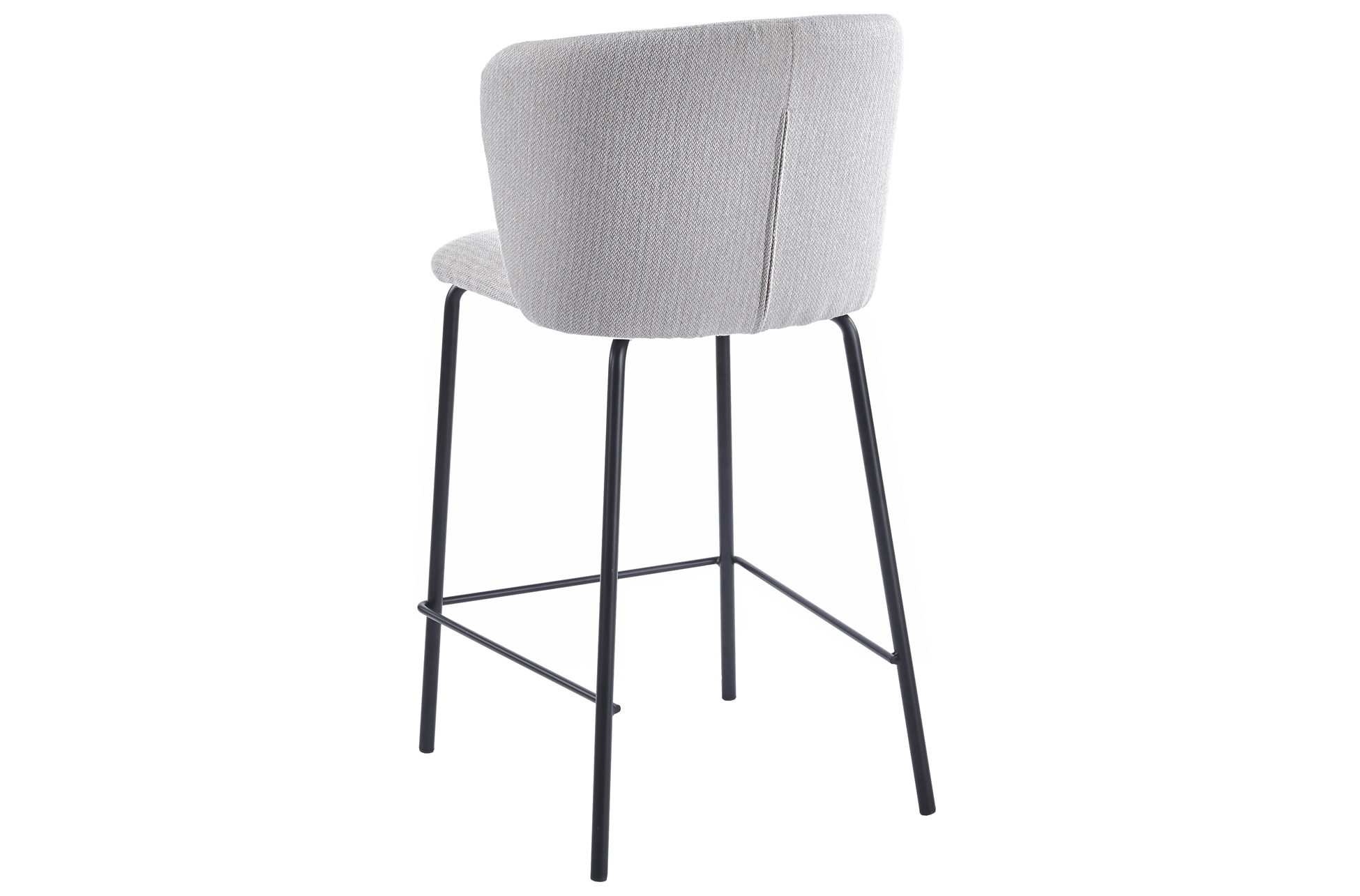 Taburete tapizado. Medida asiento y respaldo tamaño XL. Tejido beige de alto gramaje. Estructura metálica inferior sólida de una pieza soldada. Medidas: 53 x 50 x 103 cm. Alto asiento 75 cm.